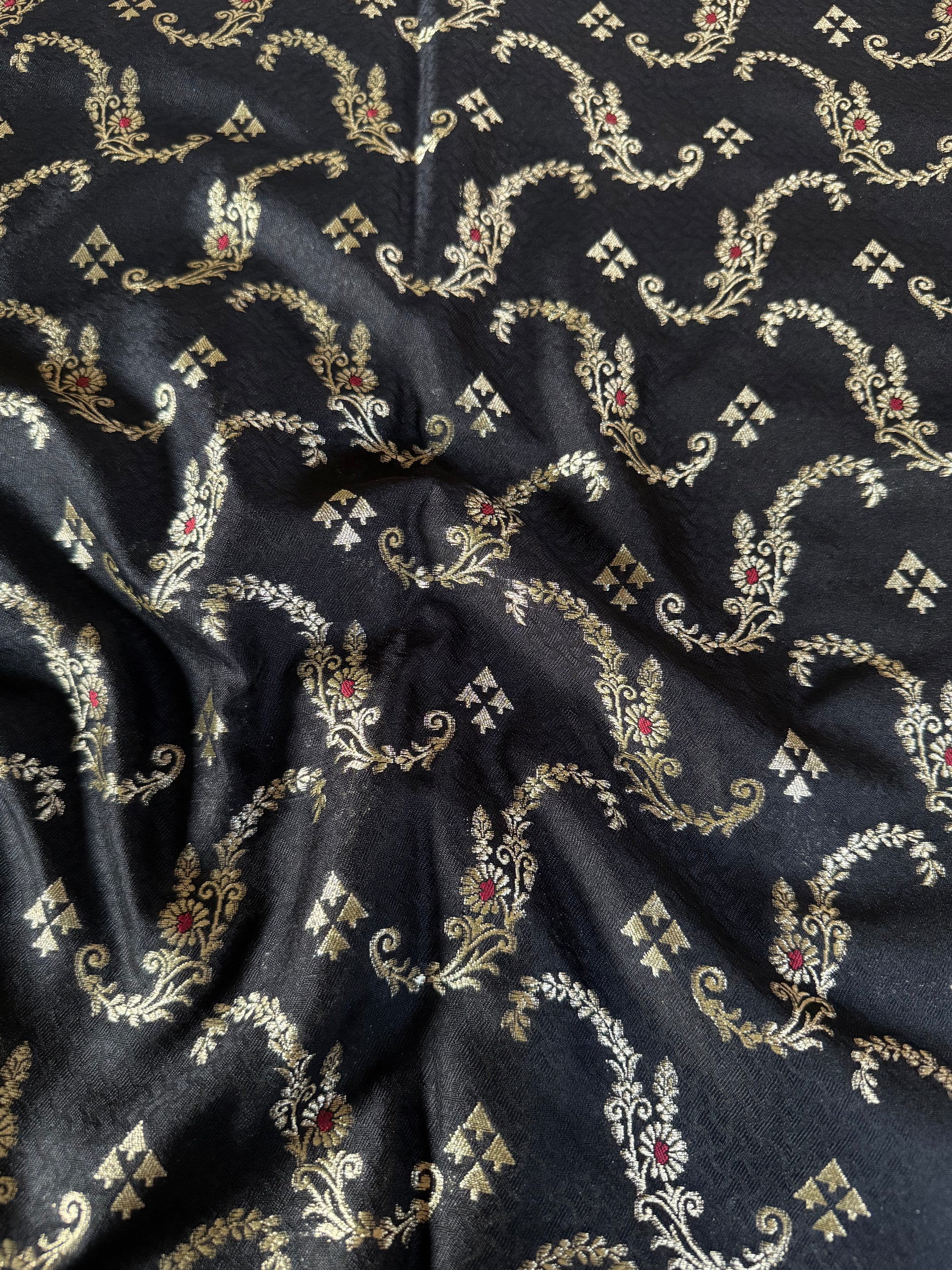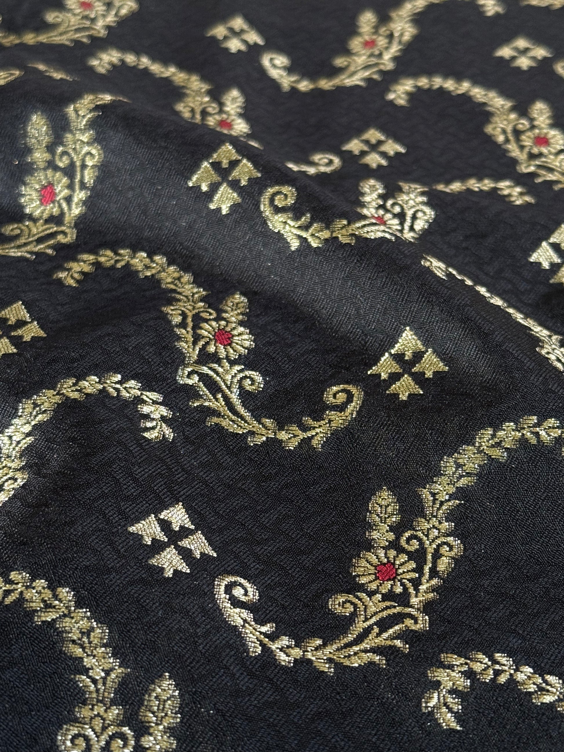 Handwoven Black Silk Tanchoi Meenakari Jaal Fabric Thaan