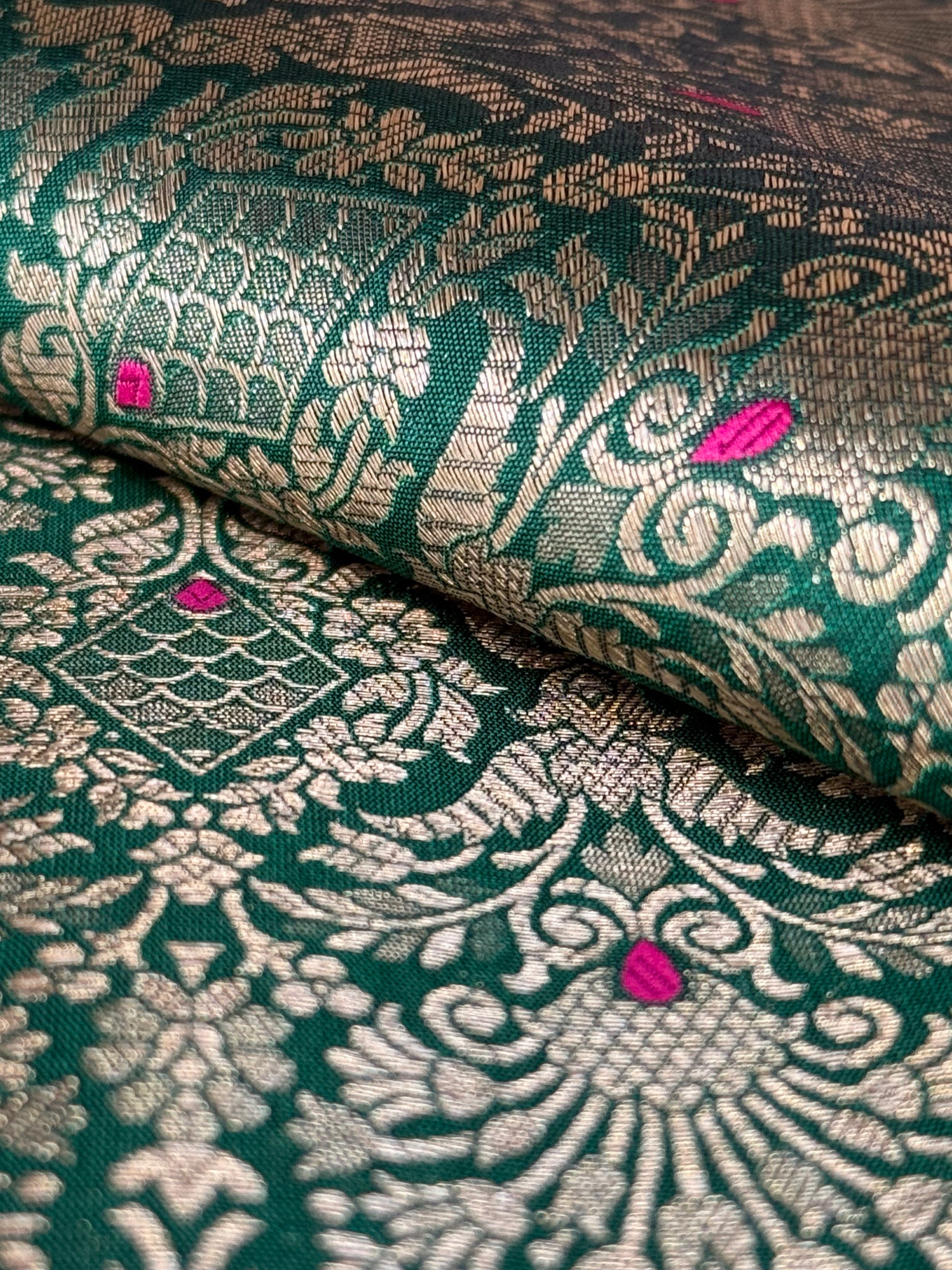 Handwoven Bottle Green Meenakari Brocade Thaan