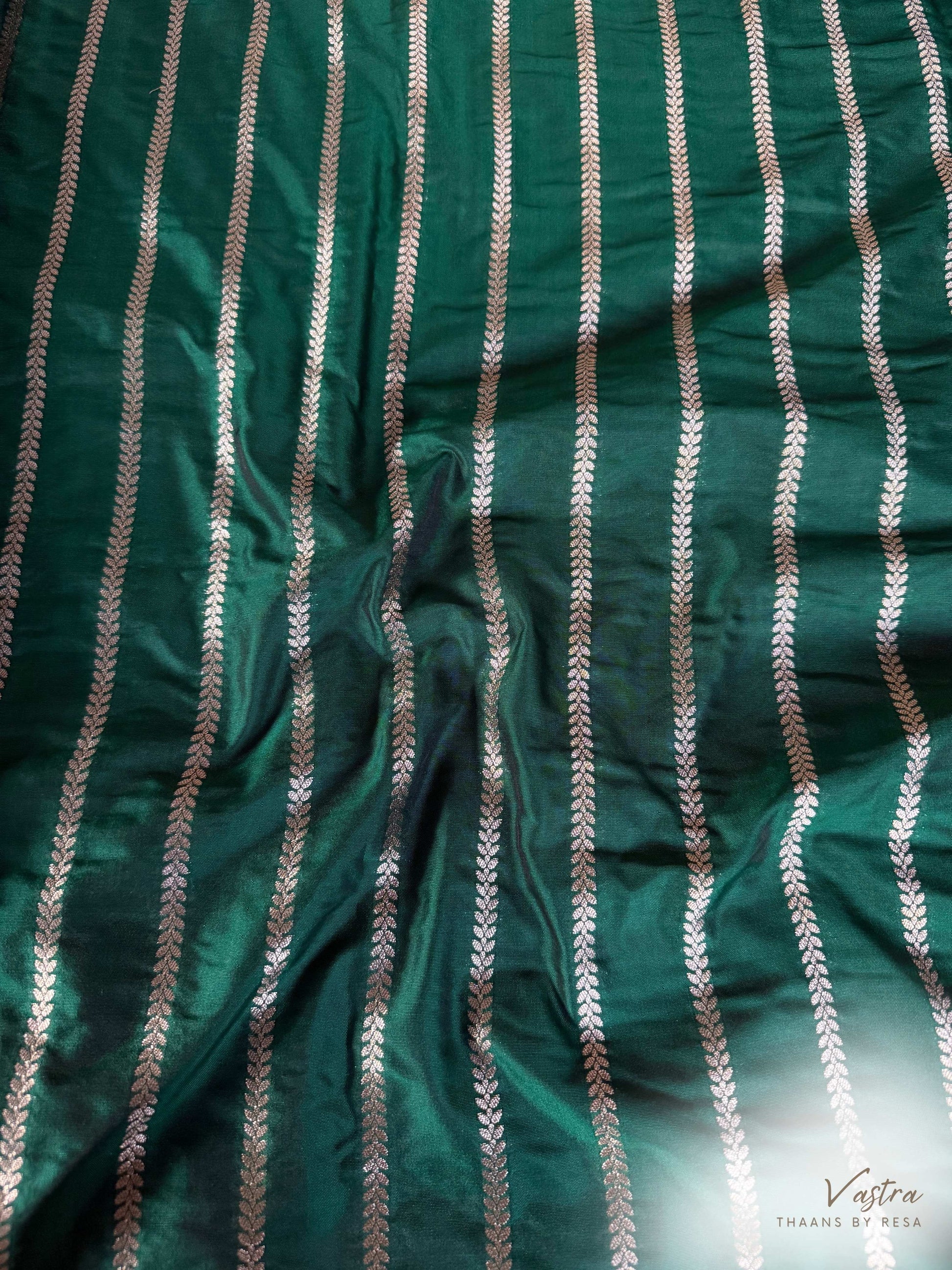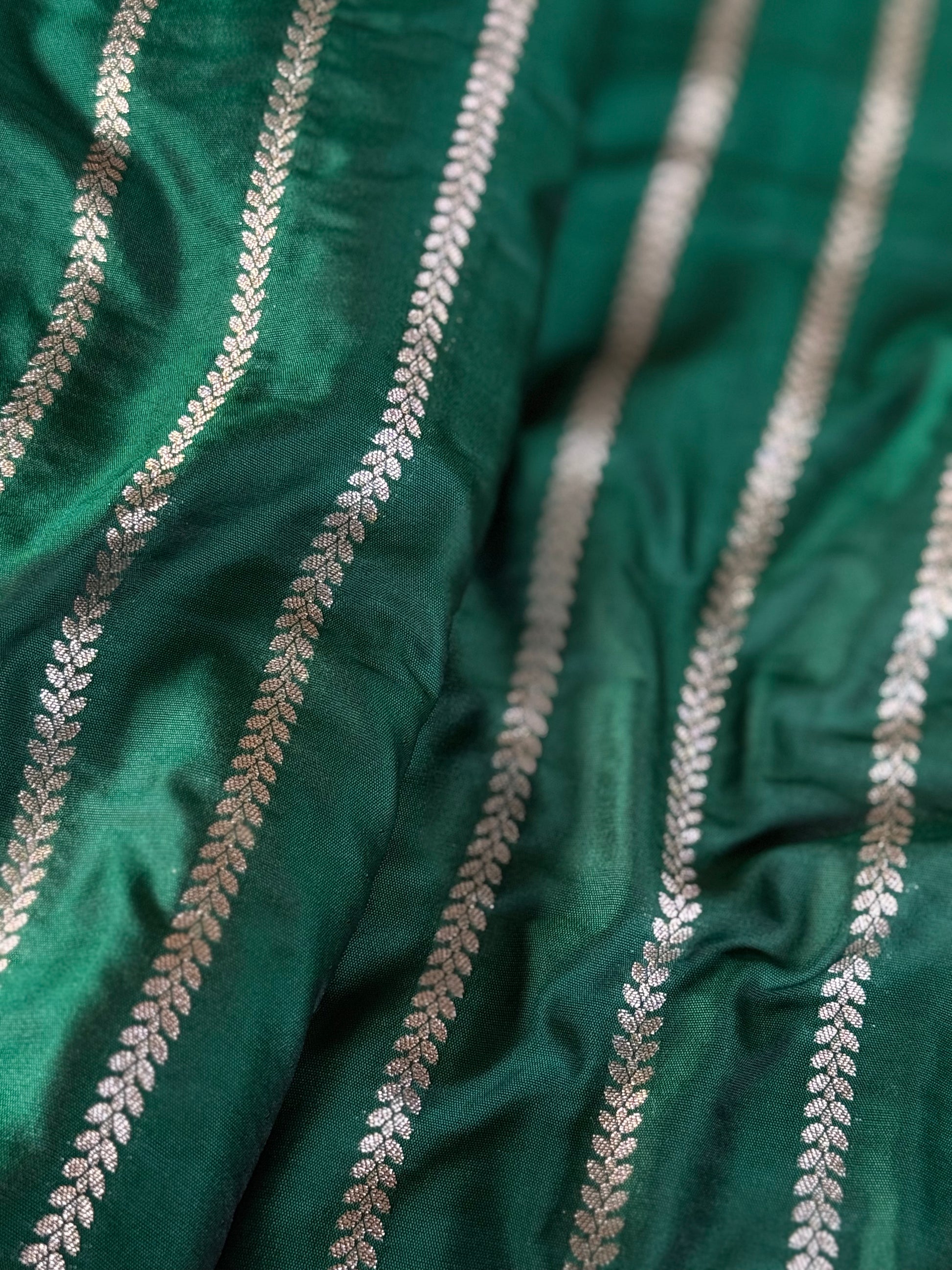 Handwoven Bottle Green Silk Stripe Fabric Thaan