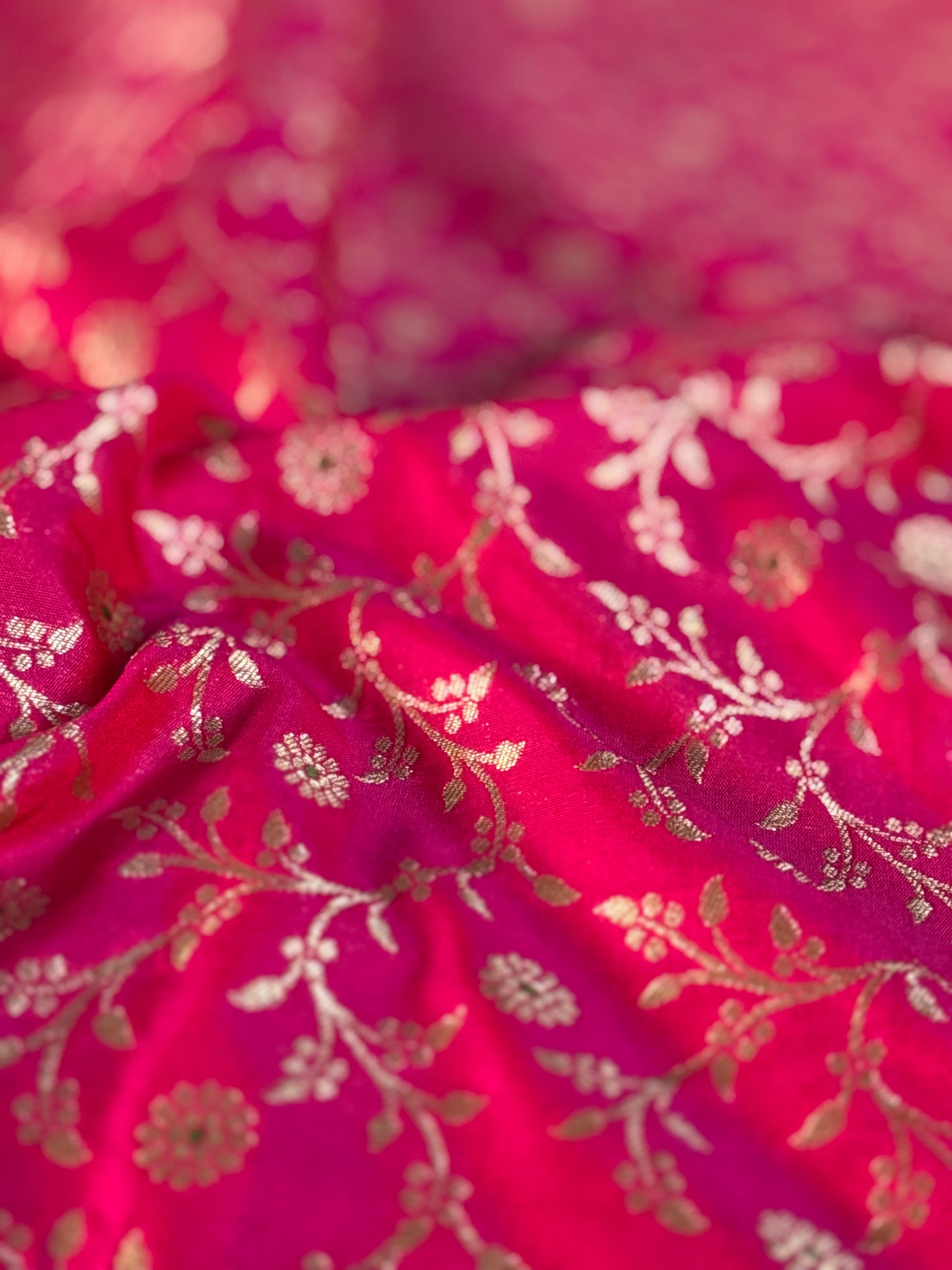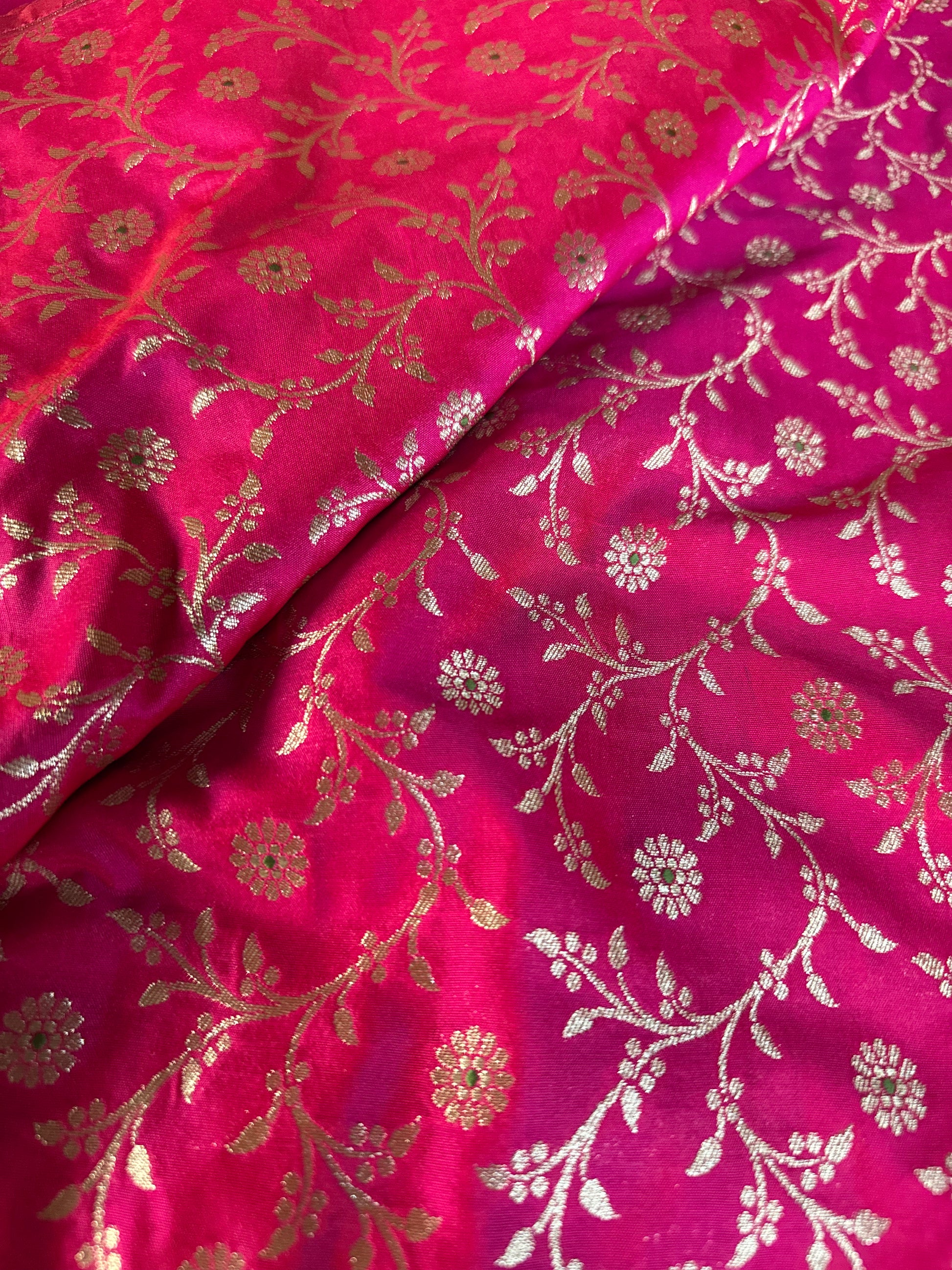 Handwoven Pink Silk Jaal Meenakari Fabric Thaan
