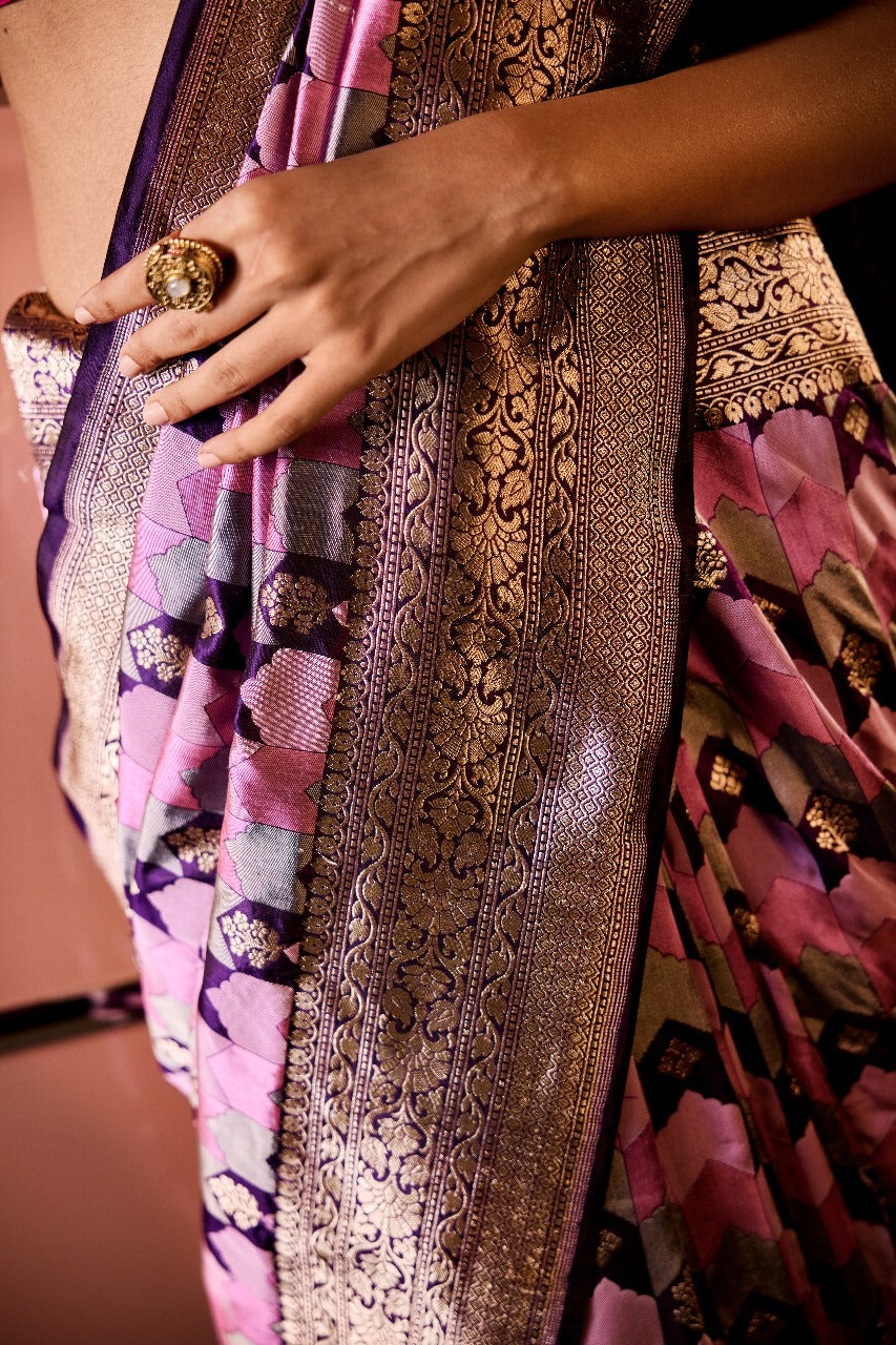 Handwoven Pink & Green Tanchoi Silk Rangat Saree