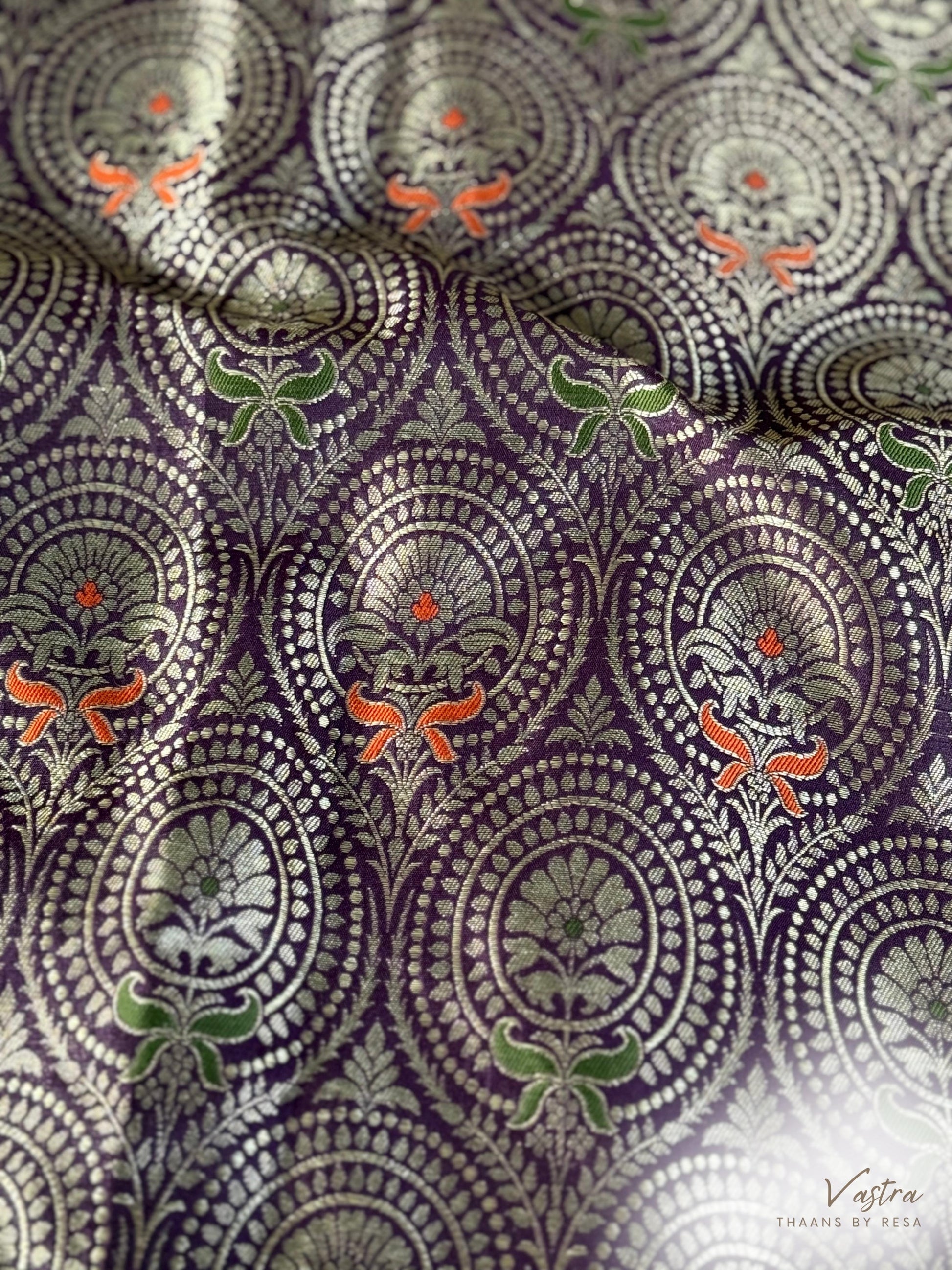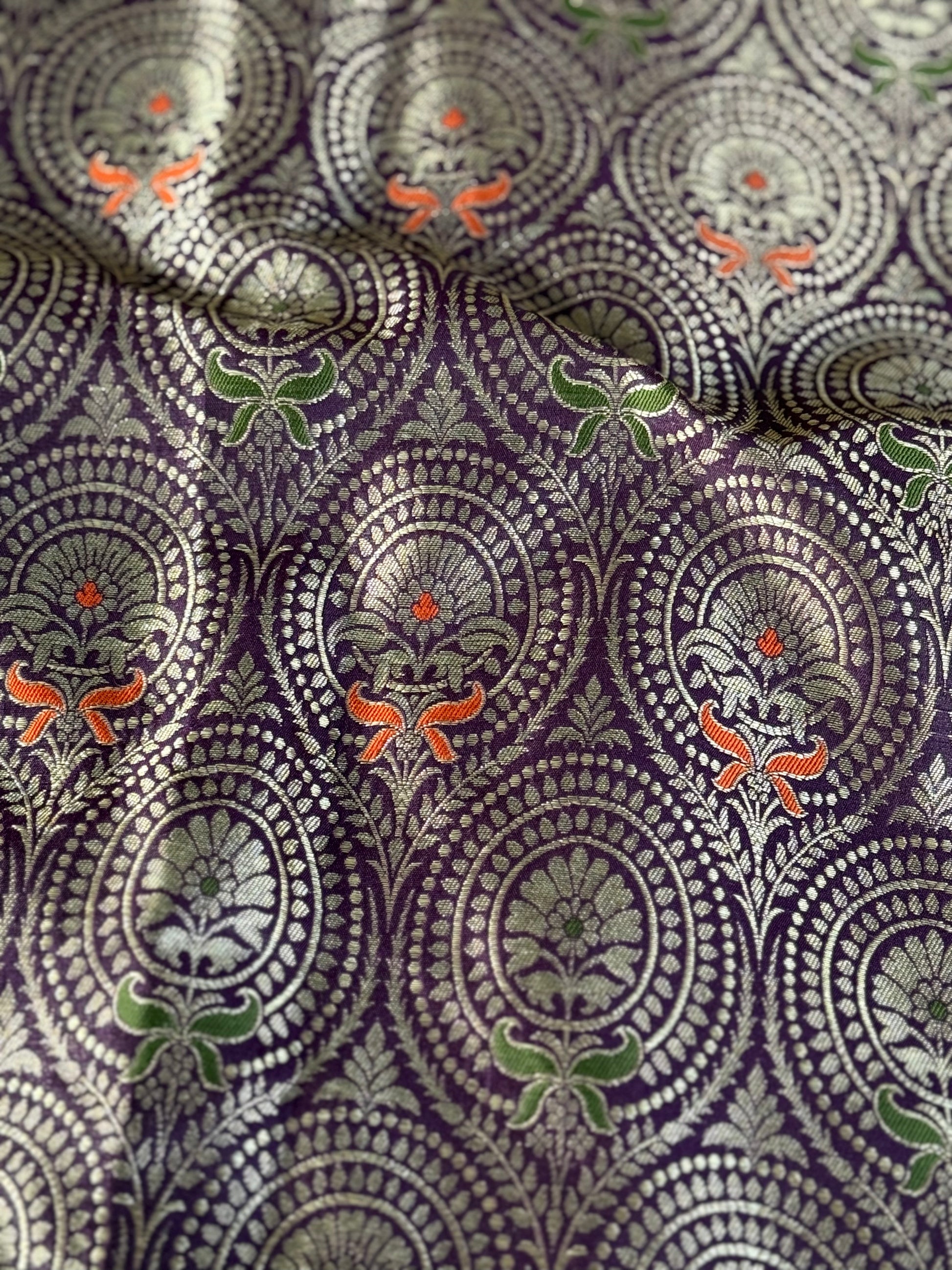Handwoven Purple Silk Brocade Meenakari Fabric Thaan