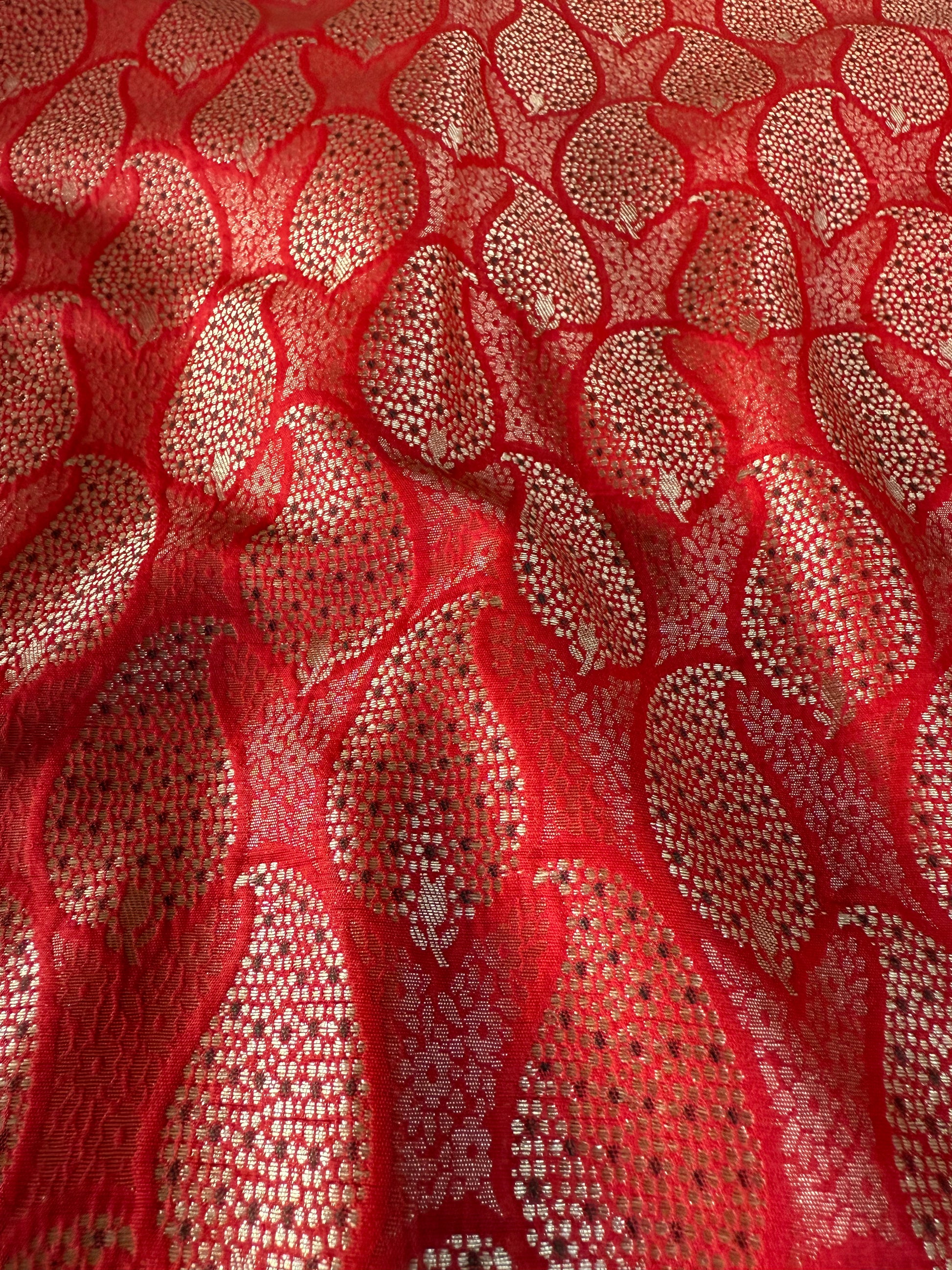 Handwoven Red Silk Paisley Brocade Meenakari Thaan
